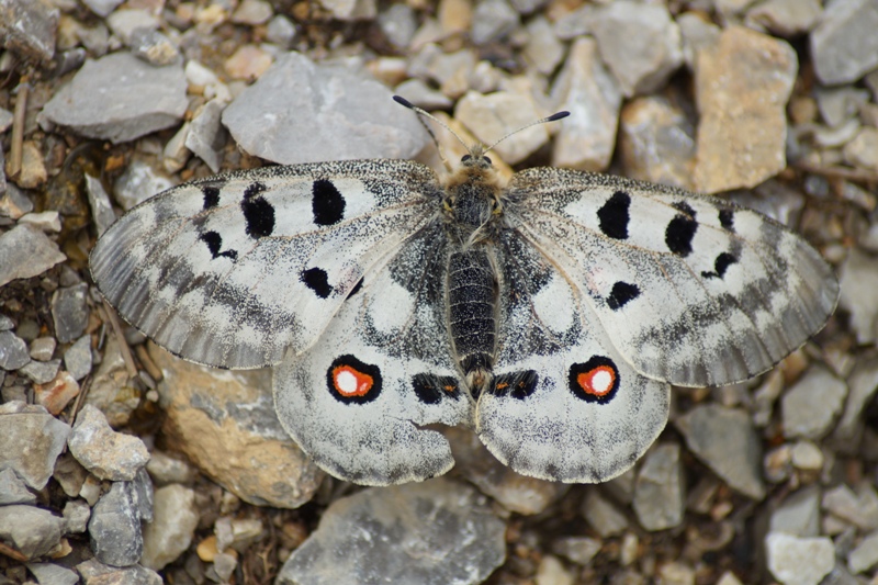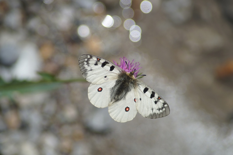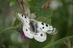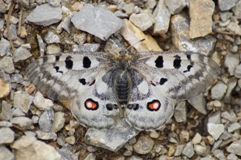 Roter Apollo, auch Apollofalter genannt (Parnassius apollo), gehört zur Familie der Ritterfalter (Alle Bilder unterliegen dem Urheberrecht und dürfen nicht ohne Erlaubnis kopiert und verwendet werden.)