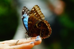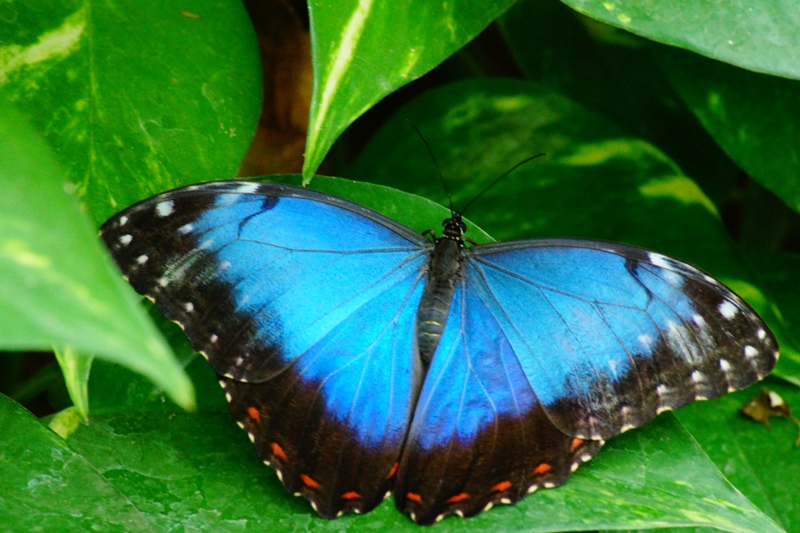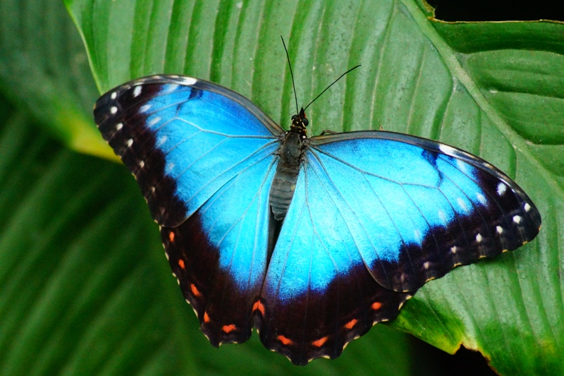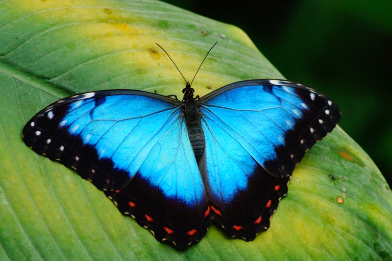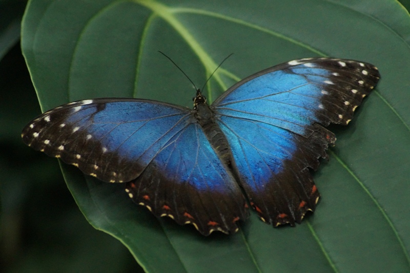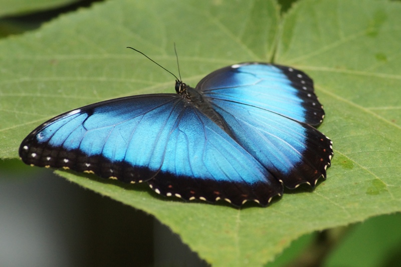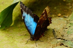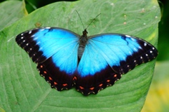 Blauer Morphofalter ((Morpho peleides), oder Himmelsfalter genannt gehört zur Familie der Edelfalter (Alle Bilder unterliegen dem Urheberrecht und dürfen nicht ohne Erlaubnis kopiert und verwendet werden.)